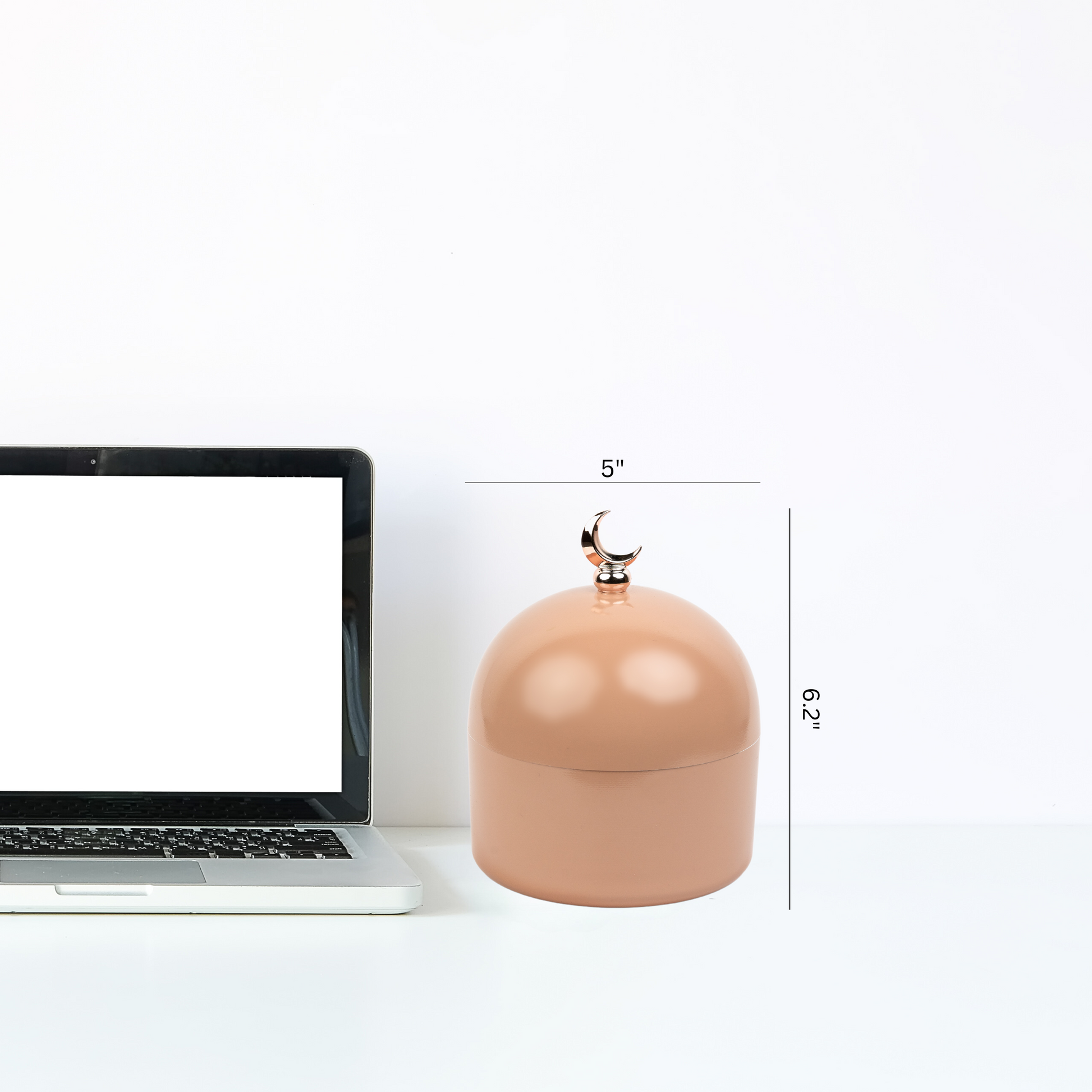 A versatile home decor piece for Ramadan, Eid, or any time of the year. This beautifully crafted, dome-shaped jar with a crescent moon handle allows you to present your guests with dates, sweets, and other desserts with a touch of elegance and flair.