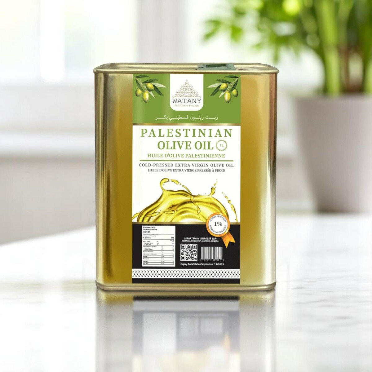 WATANY Jerusalem Olive Oil is a cold-pressed, premium Palestinian extra virgin olive oil, sourced from ancient groves near Jerusalem, Palestine. Thick and dark green in color, this oil is hand-harvested using traditional methods and is rich in antioxidants and heart-healthy fats.