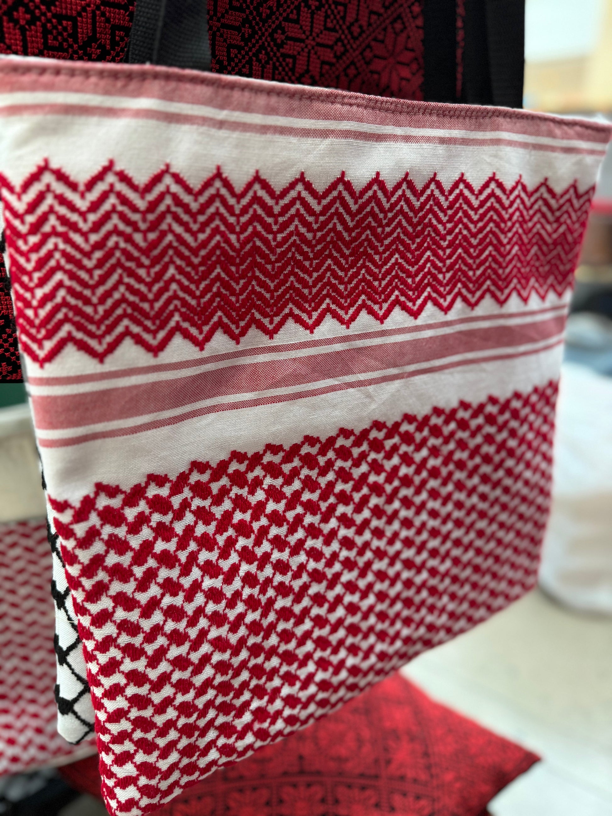 Carry a piece of heritage with you wherever you go with this Premium Kufiya Tote Bag, crafted from authentic kufiya fabric on both sides.